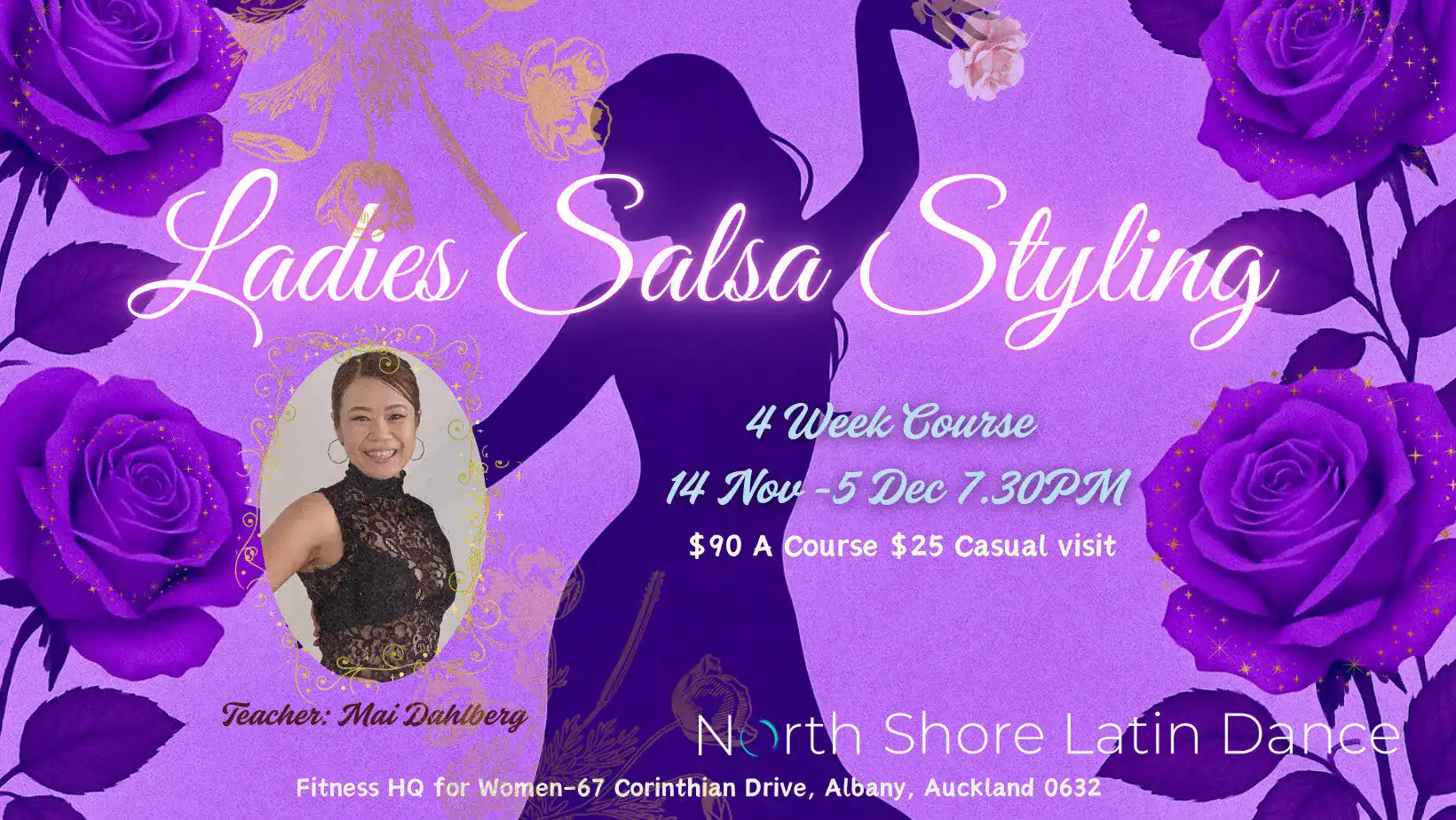 Teacher: Mai Dahlberg is a profoundly experienced dancer and teacher. Specialising in Salsa On1 & On2, NY Mambo, and Cha Cha Cha (Boogaloo), Pachanga, Bachata, Merengue and many more. Mai has won numerous titles at salsa championships in New Zealand and Australia. Trained in New York and experienced various performances internationally.
